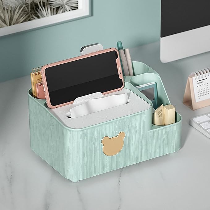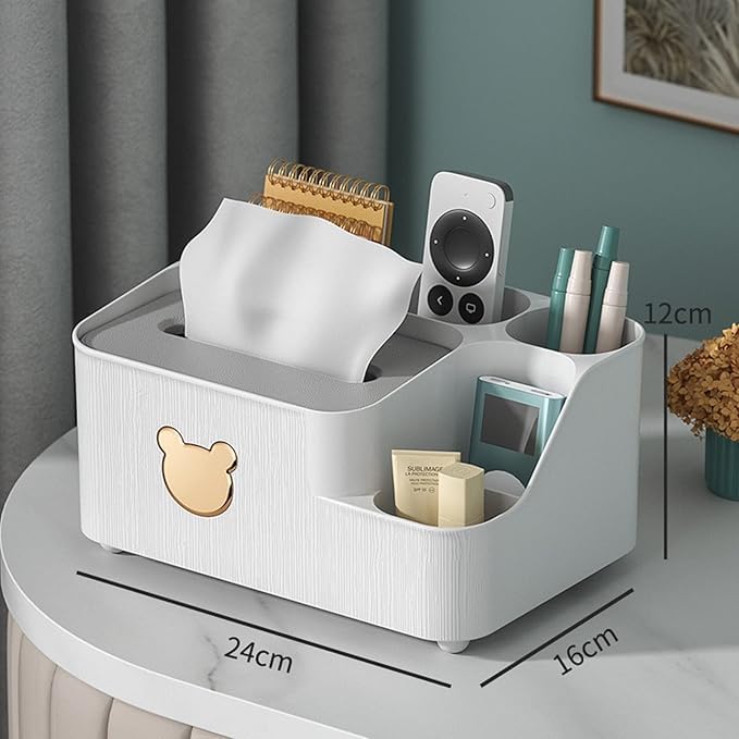 Generic - منظم علبة مناديل، علبة تخزين مناديل مكتبية متعددة الوظائف مع أقسام، علبة أقلام وأدوات مكتبية وجهاز تحكم عن بعد، منظم موزع مناديل بتصميم أنيق لغرفة النوم والحمام وغرفة المعيشة