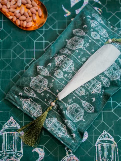 Generic - Tissue Cover, Velvety-Soft Fabric, Teal Green with Decorative Pattern and Tassel