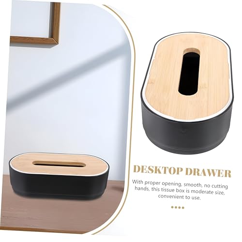- Transform your space with a touch of organization and elegance using this high-quality plastic tissue box holder, featuring a luxurious wooden lid. This dispenser combines modern design with practical functionality, making it the perfect solution for neatly arranging your tissues in an attractive manner.