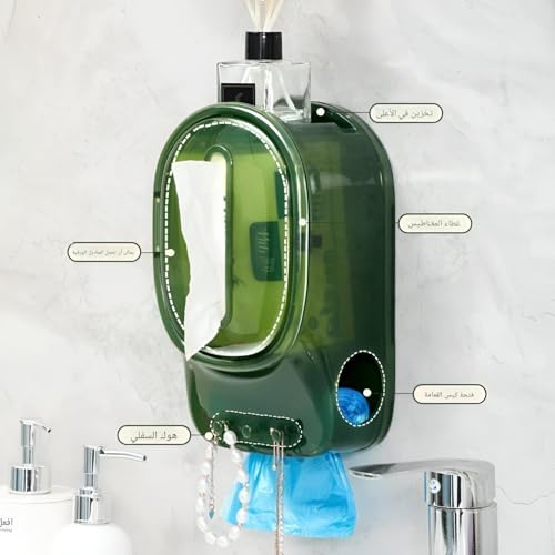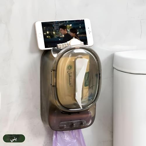 Generic - Tissue organizer - a versatile 3-in-1 solution that hangs on the wall for bathroom and kitchen, includes a tissue box, trash bag hook, phone holder, adhesive mount, and keeps things tidy.