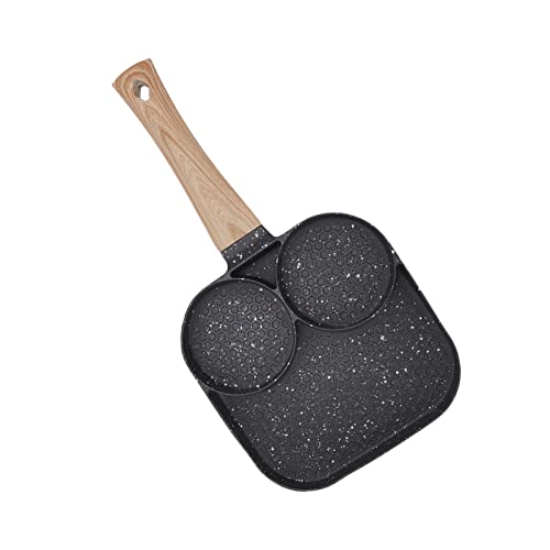 TITA-DONG - مقلاة بيض غير لاصقة، مقلاة فطور 3 في 1، مقلاة شواء مقسمة غير لاصقة، 3 اقسام، مقلاة بان كيك اومليت، مقلاة شواء مقسمة مقاومة للحرارة للغاز والمواقد والطباخ الحثي، من تيتا-دونج، الألومنيوم، أسود