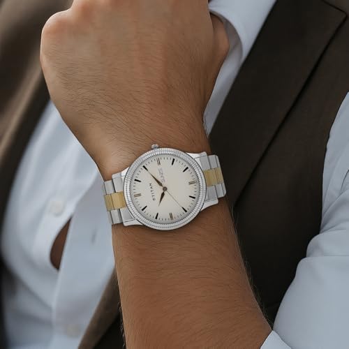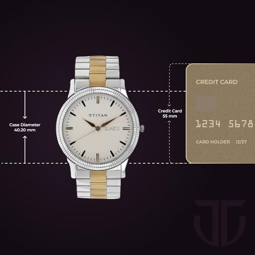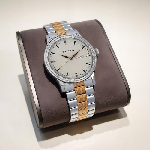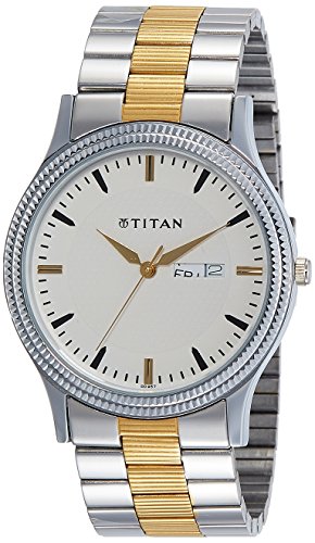 Titan - Titan 1650BM01 Two-Tone Stainless Steel Band Round Analog Watch for Men - Silver and Gold