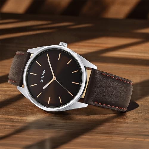 Titan - Titan 1866SL02 Leather Strap Analog Quartz Watch for Men, 40 mm Size, Brown