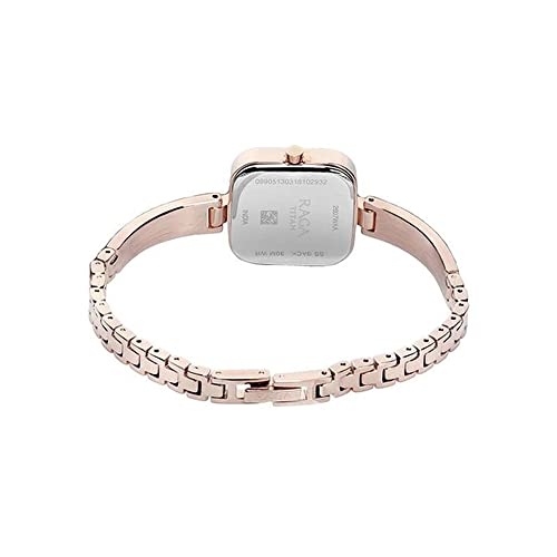 Titan - تايتن ساعة انالوج بعقارب بسوار معدني للنساء من راجا فيفا 2607WM01، طول الهيكل 31.65 ملم، لون ذهبي وردي
