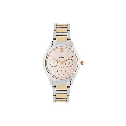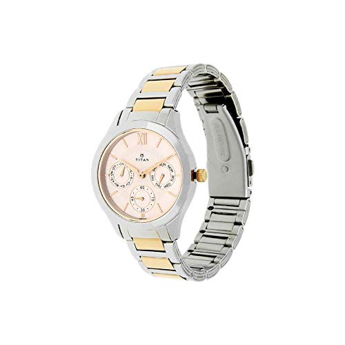 Titan - ساعة رسمية للنساء انالوج معدن من تيتان 2570KM01، بمينا الوردي، بسوار متعدد الألوان