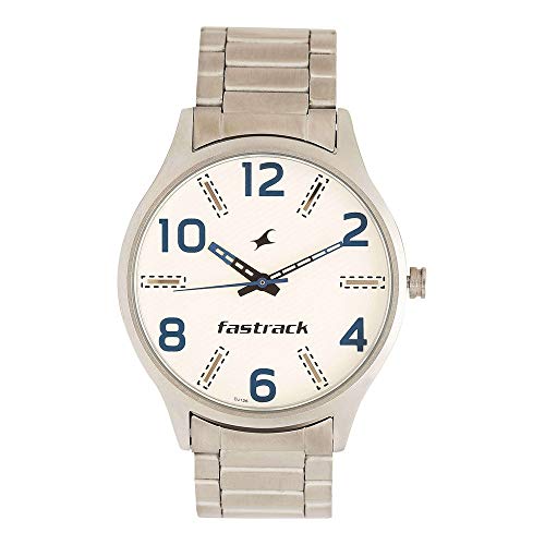 Fastrack - ساعة يد انالوج بعقارب دائرية بسوار ستانلس ستيل للرجال من تيتان فاستراك Denim 3184SM02