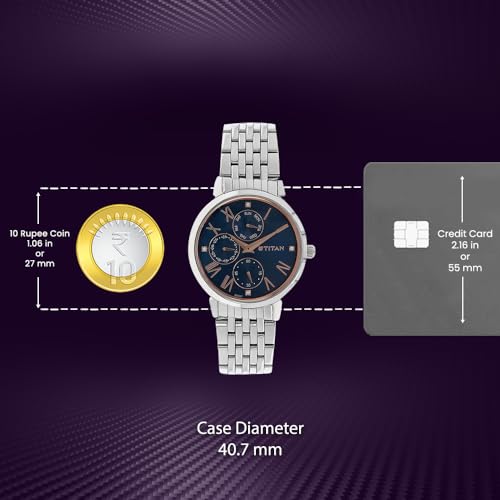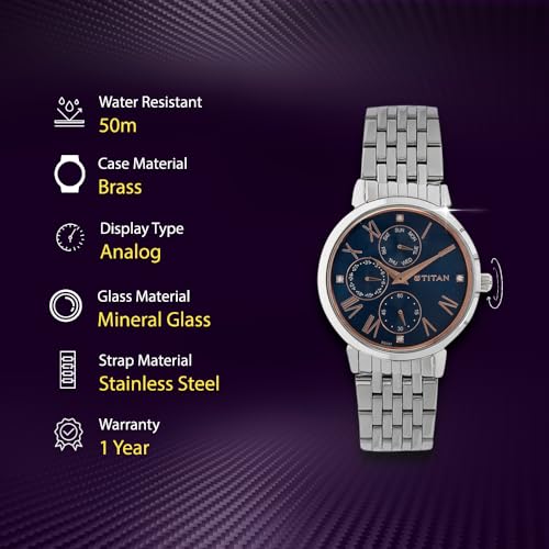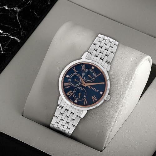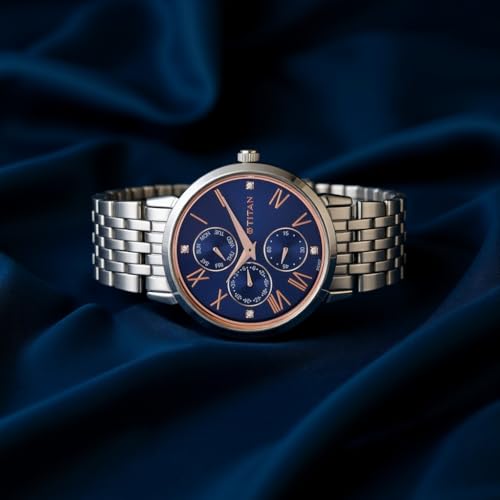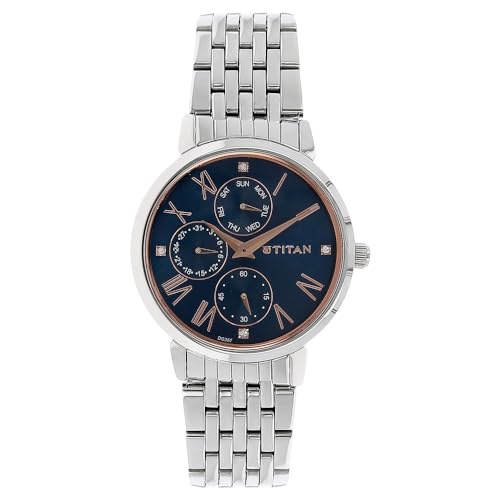 Titan - ساعة نيو لي انالوج بعقارب ومينا ازرق للنساء من تيتان، ازرق، مقاس واحد، موديل NL2569SM01, أزرق, Free Size