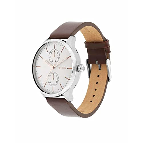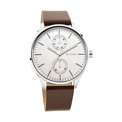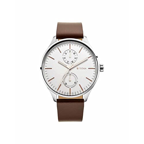 Titan - Titan Mens NEO Evoke White Dial Leather Analogue Watch - WTT1833SL02, Brown