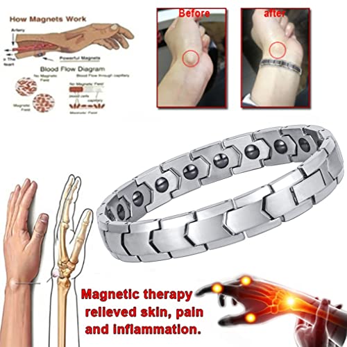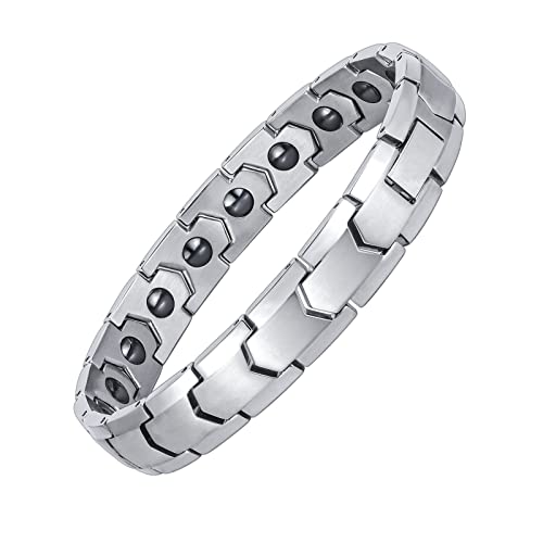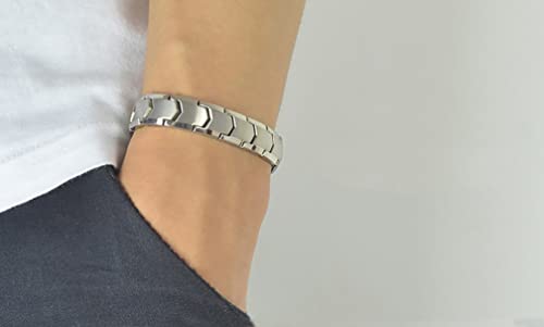 Apocalyptic-K - سوار من ستيل التيتانيوم، سوار مغناطيسي للرجال، سوار مغناطيسي من ستيل التيتانيوم، يتضمن 18 مغناطيس صفراء اسود لتحسين النوم والقضاء على الكهرباء الساكنة، ستانلس ستيل