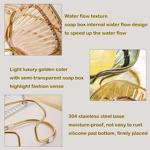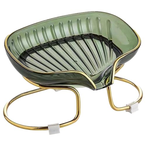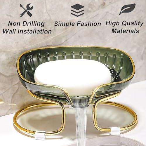 Tiuran - Soap Holder Self Draining Soap Dish Holder, Not Punched Easy Clean Bar Soap Holder, Soap Dish with Golden Metal Stand,Suitable for Shower, Bathroom, Kitchen Sink Bathtub (Green)