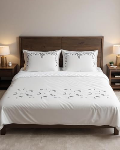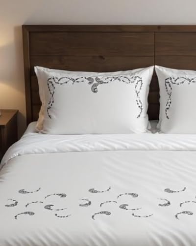 - Elegant Embroidery. Detailed embroidered designs bring a touch of sophistication and hotel-style charm.