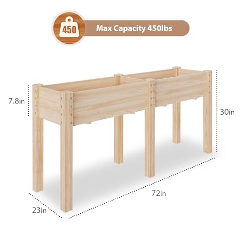 - 【DUAL ZONE PLANTING AREA】: 7.5 cubic feet of space with dual zones and the liners included, this elevated garden bed could support you to grow flowers, herbs, vegetables, or succulents in excellent condition—the possibilities are endless! OVERALL DIMENSIONS: 72"(L) x 23"(W) x 30"(H); Weight Capacity: 450 lbs.