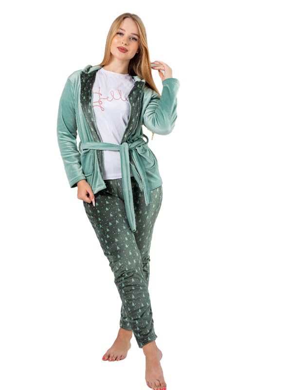 TN - TN Fashion Women’s 3-Piece Loungewear Pajama Set – Hooded Robe Size Medium - Mint - Winter pajama
