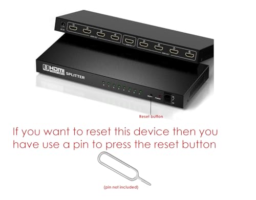 - 8-Port HDMI Splitter distributes identical video and audio signals from a single HDMI source to up to 8 remote HDMI displays simultaneously without loss of quality.