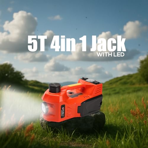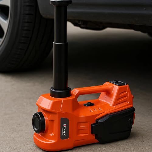 Toby's - Toby's 3-in-1 360° Light Electric Car Hydraulic Floor Jack with Built-in Tire Inflator Pump and LED Light with 2-Way Power Supply 5 Ton)