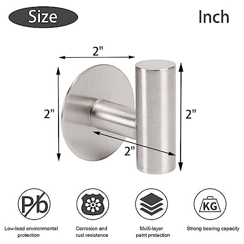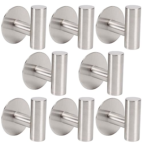 TocTen - TocTen Bath Towel Hook, Strong Self Adhesive Robe Hook, SUS 304 Stainless Steel Stick on Wall Coat/Clothes Hook No Drilling, Shower Wall Hook for Bathroom Kitchen Office Closet(Brushed Nickel, 8 Pack)