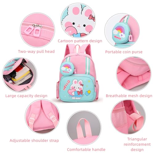 AoMige - Toddler Backpack Kids Cute Cartoon Schoolbag Lightweight Bookbags Daypack School Backpack with Adujustable Strap Small Preschool Daycare Bag with Coin Pocket for Girls Boys (Pink-02)