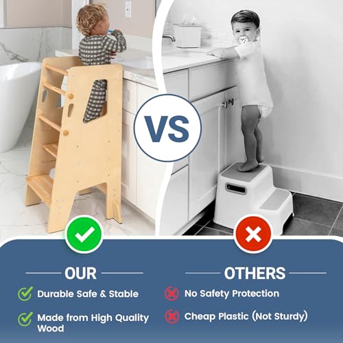 - MONTESSORI LEARNING: From assisting in cooking and handwashing to observing your daily routines, this learning tower offers hands-on learning experiences linked to your child's developmental stage, giving a sense of self-reliance and confidence.