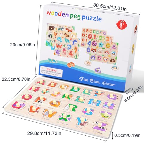 - 【ألعاب تعليمية وتعليمية خشبية】 ألعاب أحجية مونتيسوري للأطفال الصغار ممتعة وقابلة للتعلم وتحدي وتبقي الطفل مهتمًا وهي أدوات تعليمية رائعة للأطفال للتعرف على الحروف الأبجدية والأرقام والأشكال والحيوانات. مجموعة الألعاب الخشبية هذه مثالية لتحسين صبر الأطفال وذاكرتهم ومهارات الإدراك البصري والتنسيق بين اليد والعين والتفكير المنطقي الرياضي ومهارات اللغة والتهجئة والقدرات المعرفية والتعلم.