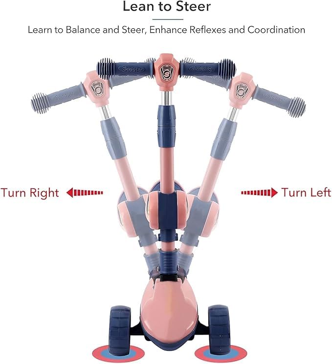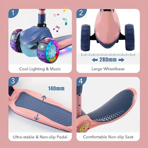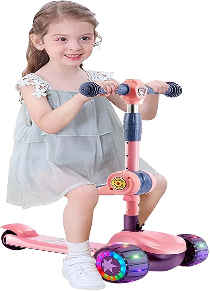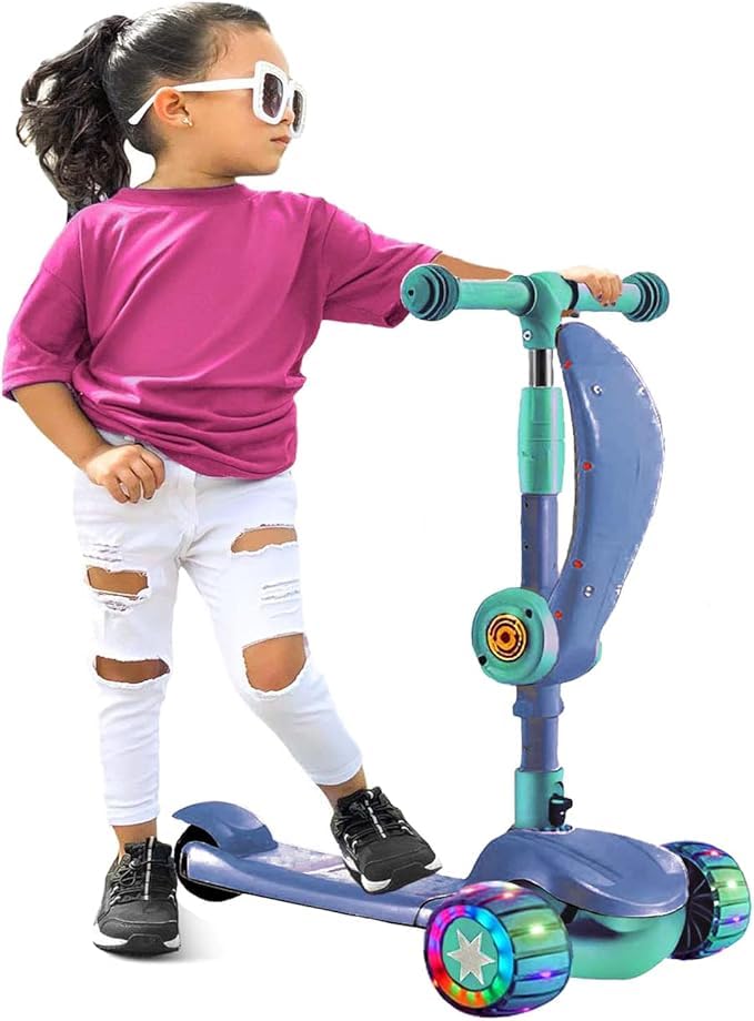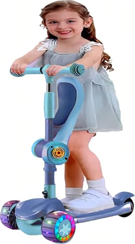 Generic - سكوتر للأطفال من سن 3 الى 12 سنة للأولاد والبنات مع 3 عجلات بإضاءة ليد، سكوتر دفع عريض للغاية قابل للطي للأطفال من سن 3-12 سنة مع 4 ارتفاعات قابلة للتعديل وللتوجيه (لون أزرق)