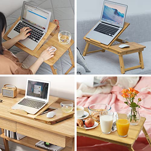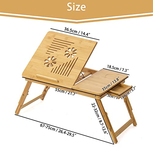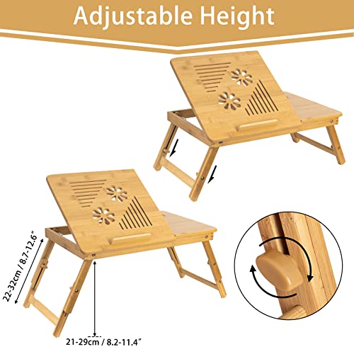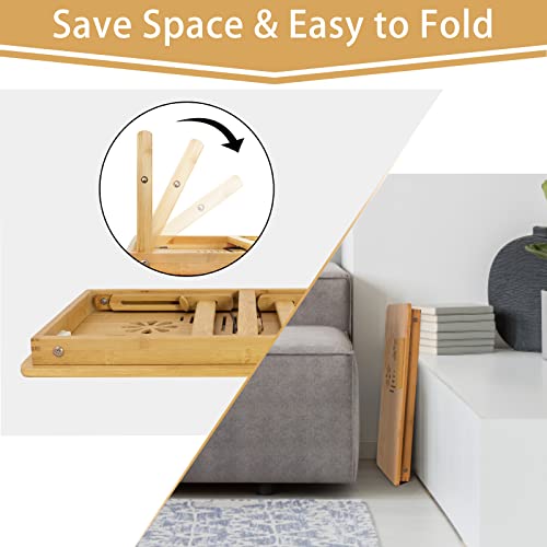 Todeco - صينية سرير قابلة للطي من توديكو، ترابيزة كمبيوتر محمولة، مكتب قابل للتعديل بفتحات تهوية رائعة، المادة: بامبو، أبعاد سطح الترابيزة: 55 × 35 سم