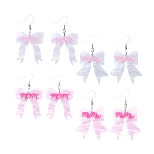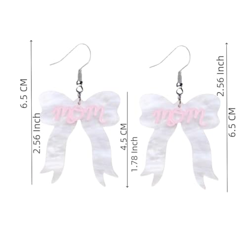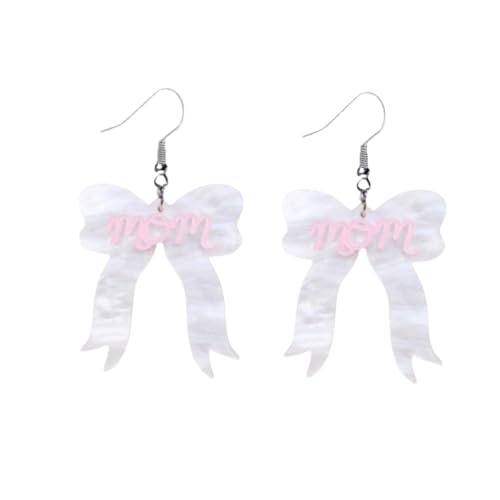 Todu - Todu Bow Earrings Pink White Bowknot Letters MOM MAMA Drop Dangle Mother's Acrylic Earrings Pregnancy Announcement Accessories Gifts for Mother
