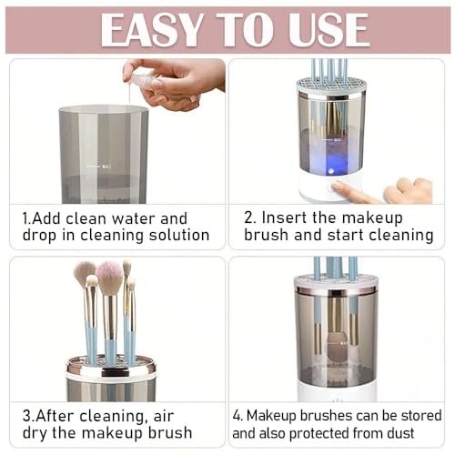 - Save time and energy: this automatic brush cleaner cleans multiple brushes of different sizes at the same time, which makes it easy for busy makeup artists to not waste time cleaning brushes.