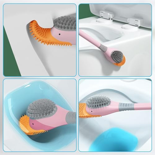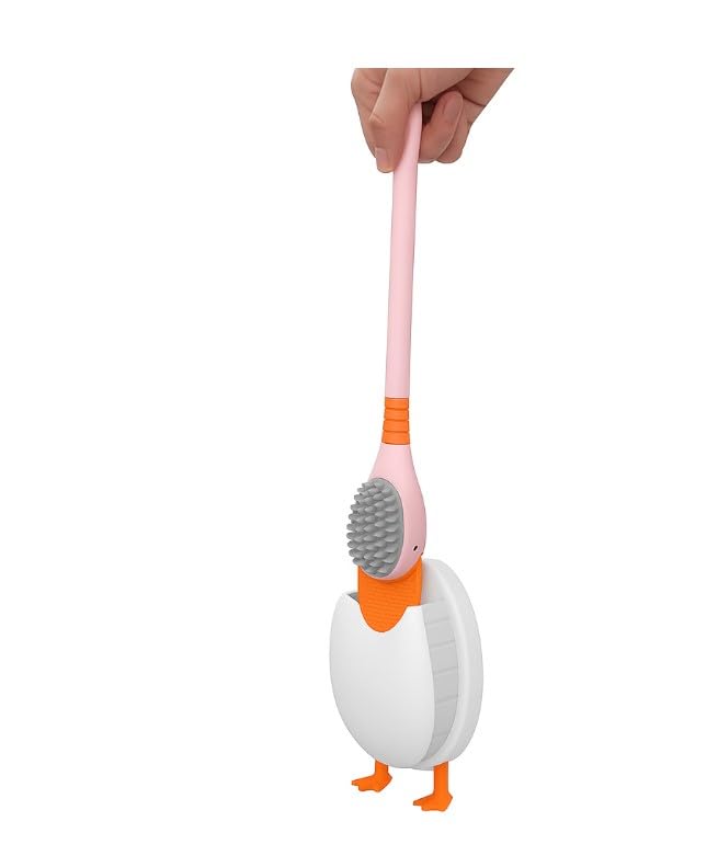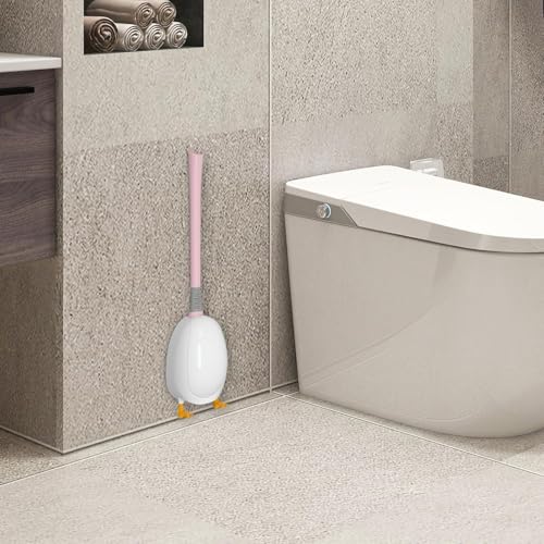 Generic - فرشاة للمرحاض بتصميم بطة من السيليكون مع حامل، فرشاة تنظيف الحمام للتثبيت على الحائط بشعيرات ناعمة ومقبض طويل لتنظيف عميق، 2 قطعة، لون وردي
