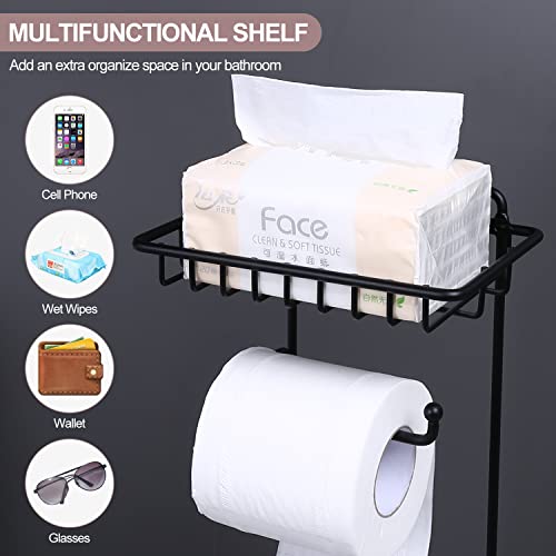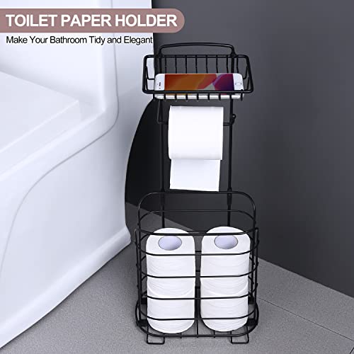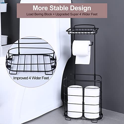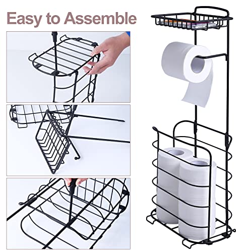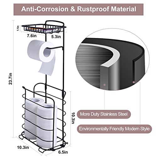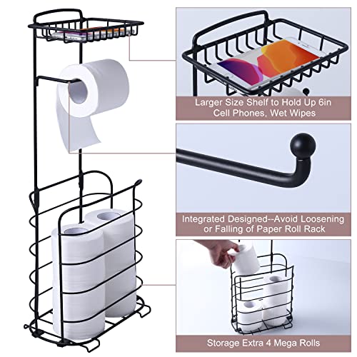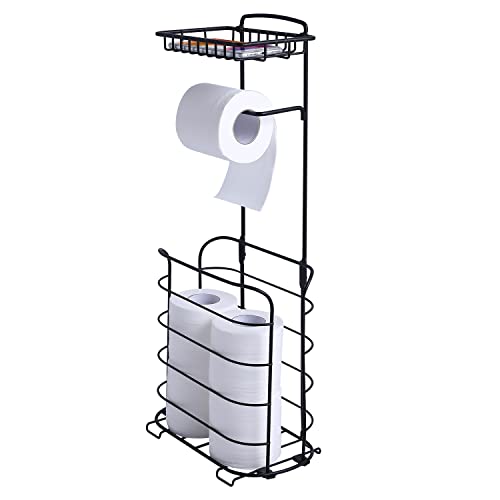 BOIVSHI - حامل وموزع ورق التواليت لـ4 بكرات احتياطية، تخزين ورق التواليت للحمام مع حامل مناديل ورقية، رف قائم بذاته لبكرات مناديل الحمام الكبيرة / الموبايل / المناديل / المجلات - أسود