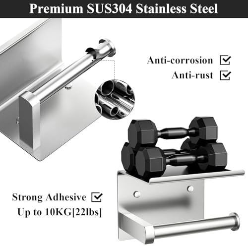- PREMIUM MATERIAL: This toilet paper roll holder is expertly crafted from high-quality SUS 304 stainless steel, boasting a thickness of 1.5 mm. This ensures exceptional durability and dependability, making it a long-lasting addition to your bathroom. Its superior construction guarantees that it will remain rust-free under any circumstances, providing peace of mind and maintenance-free use over time.