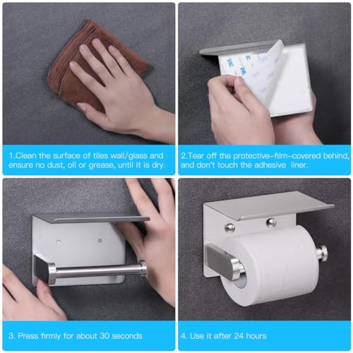 - EASY INSTALL OPTIONS: Installation is a breeze with this holder, offering two convenient methods to suit your preferences. The first option is a simple no-drill setup using the self-adhesive pad; just peel off the film and stick it to the wall. Alternatively, for a more permanent solution, utilize the complete hardware kit included for traditional mounting. Both options are straightforward, ensuring that even those without DIY experience can easily install the holder.
