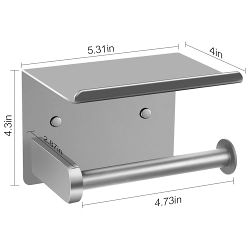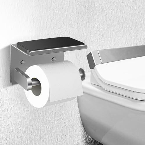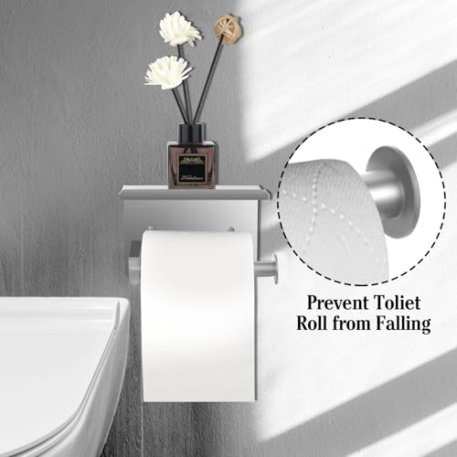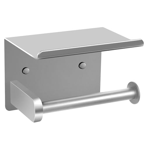 Ahomxin - حامل ورق تواليت مع رف، حامل ورق تواليت فضي يثبت على الحائط، حامل ورق تواليت ذاتي اللصق، حامل ورق تواليت للحمام وغرفة الغسيل