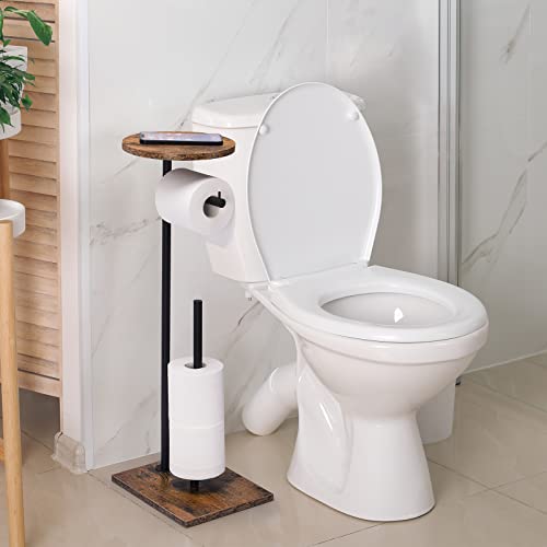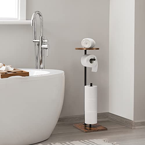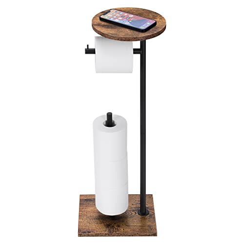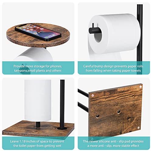 - Stable Toilet Tissue Holders Stand Wood - Crafted with thicker MDF wood board and sturdy metal, this standing tissue roll organizer with wood shelf is stable and solid enough. And the updated silicone foot-pads make wood toilet roll paper stand more anti - slip and stable.