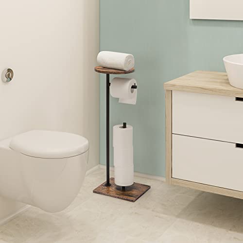 NORCEESAN - Toilet Paper Stand Tissue Holder Farmhouse Toilet Roll Paper Stand with Shelf Bath Paper Organizer Free Standing Tissue Paper Dispenser Floor Paper Roll Holder with Reserve for Bathroom, Wood
