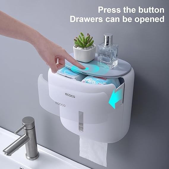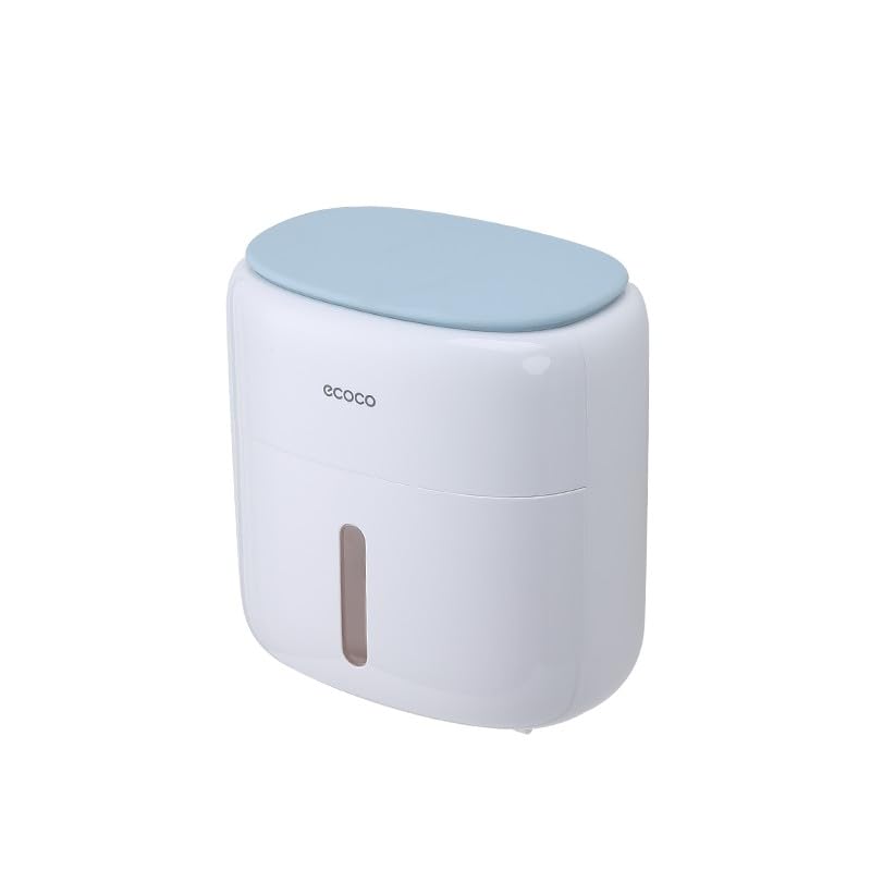Spaceshoop - Toilet Roll Holder Wall Mounted Self Adhesive Paper Towel Holder Rolls Tissue Holder tissue storage box with Small Drawer Three layers of storage Waterproof and dust No Drilling (Blue)