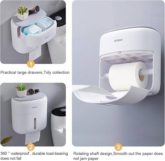 - 【Three-layer storage】 The top of the toilet paper holder is used to store small items such as mobile phones, watches, perfumes, etc.; the small drawer in the middle is used to store personal items, which is waterproof and dustproof; the large space at the bottom is used to store toilet paper or paper towels, with a visual window design,Display the remaining amount of paper in real time.