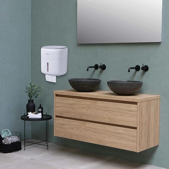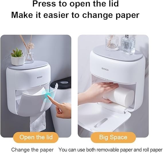 - 【Waterproof and Dustproof】 The paper towel holder adopts a full-coverage design, which has good sealing, is waterproof and dustproof, and is not afraid of the humid environment in the bathroom. Suitable for bathrooms, public toilets, kitchens, etc."One-click opening design on the top makes paper changing quick and easy