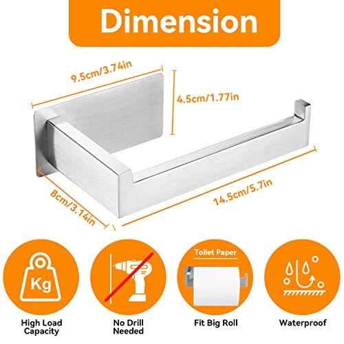 YUET - حامل ورق التواليت ذاتي اللصق، حامل تخزين قائم بذاته من الفولاذ المقاوم للصدأ، حامل مناديل للحمام والمطبخ مربع 304 (فضي مصقول)