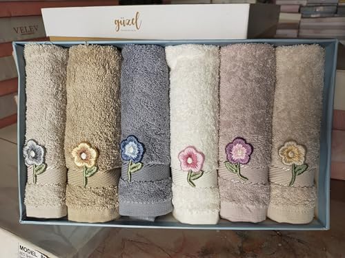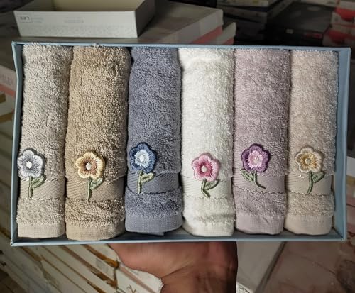 Generic - Toilet Towel Set - 6 Towels - Cotton Soft Touch - Embroidered - Size 35 * 35