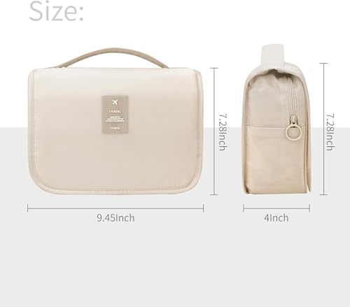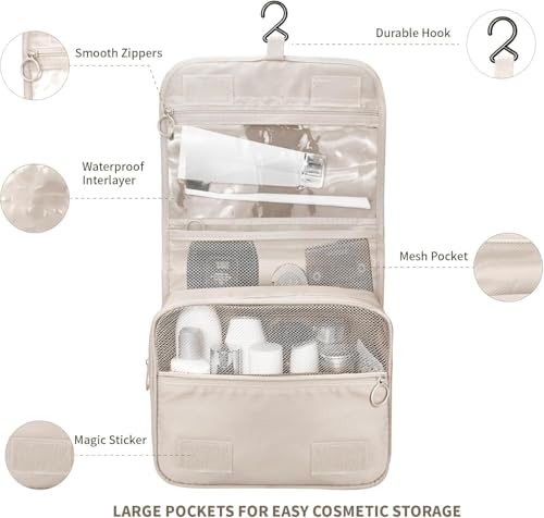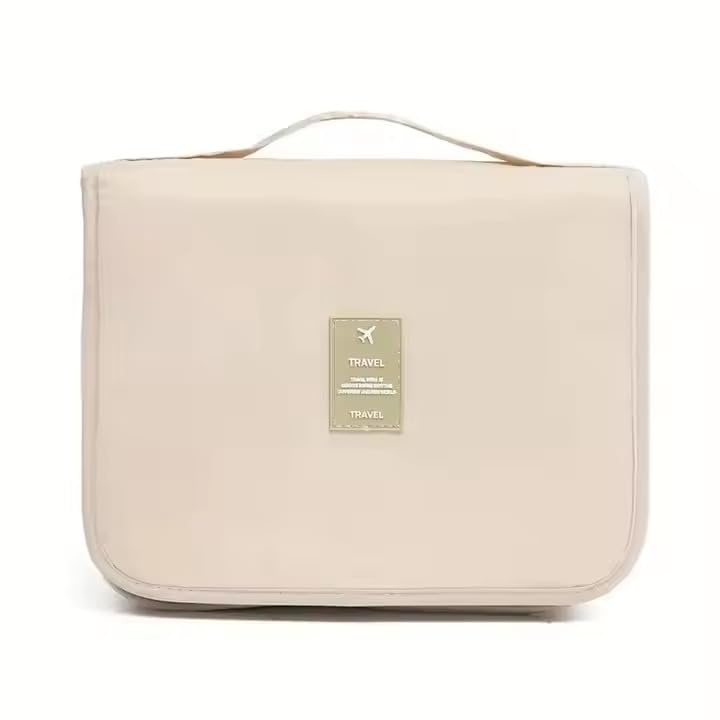 Generic - Toiletry Bag - Multi-Pockets Travel Bag with Hanging Hook for Men and Women, Waterproof Travel Cosmetic Storage bags, Ideal for Brushes Set, Full-Sized Shampoo & Accessories (Beige)