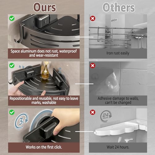 - PREMIUM MATERIAL: Constructed from durable aluminum with a sleek gunmetal grey finish, these corner shower caddies provide a stylish and rust-resistant storage solution