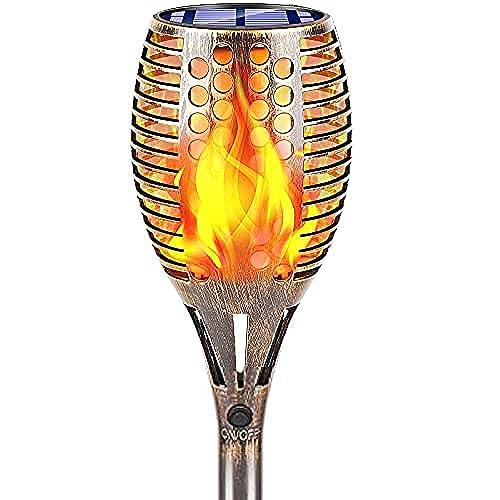 TomCare - TomCare Solar Lights Upgraded, 43" Waterproof ing Flames 96 LED Torches Lights Outdoor Solar Landscape Decoration Lighting Dusk to Dawn Auto On/Off Pathway Lights for Garden Patio Bronze (1)