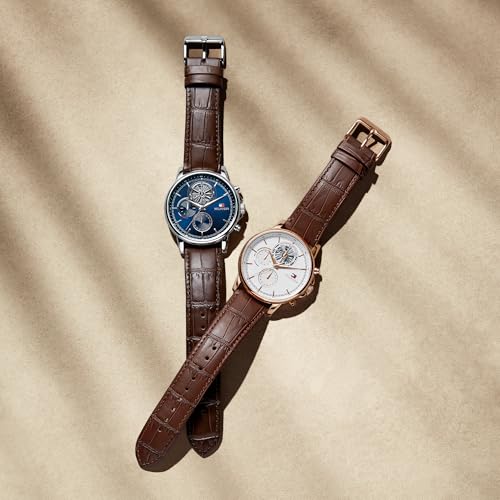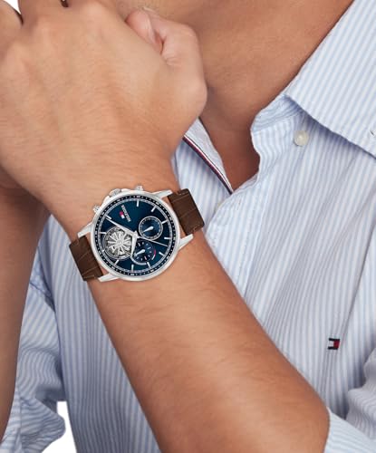 Tommy Hilfiger - تومي هيليفيغر ساعة كوارتز انالوج متعددة الوظائف للرجال مع مينا فرعية وهيكل عظمي وسوار من الستانلس ستيل او سوار من الجلد