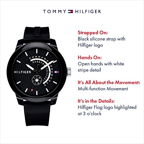 Tommy Hilfiger - Tommy Hilfiger Men's Denim Quartz Watch with Silicone Strap, Black, 19.4 (Model: 1791483)