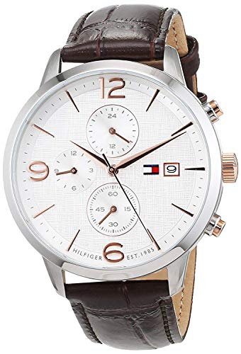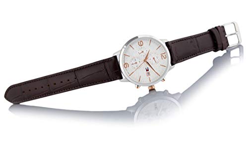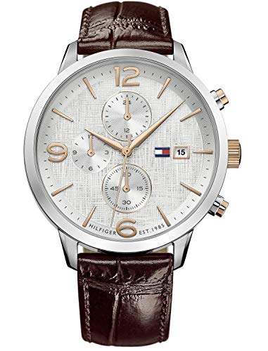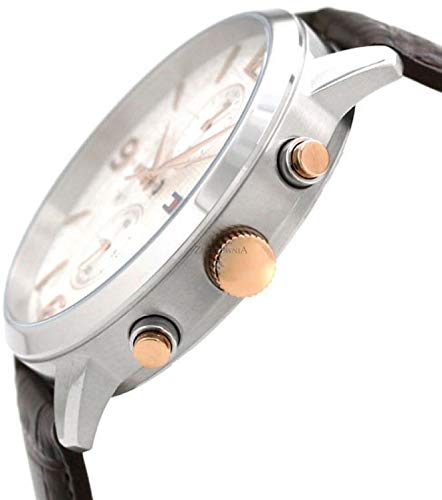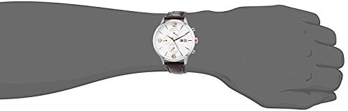 Tommy Hilfiger - تومي هيليفيغر ساعة كوارتز للرجال بمينا متعددة وسوار جلدي بلون بني/فضي