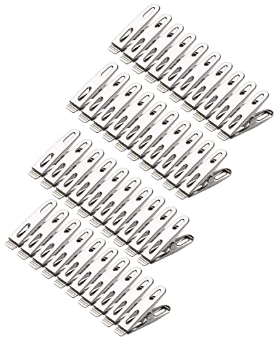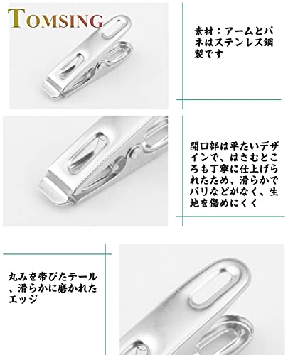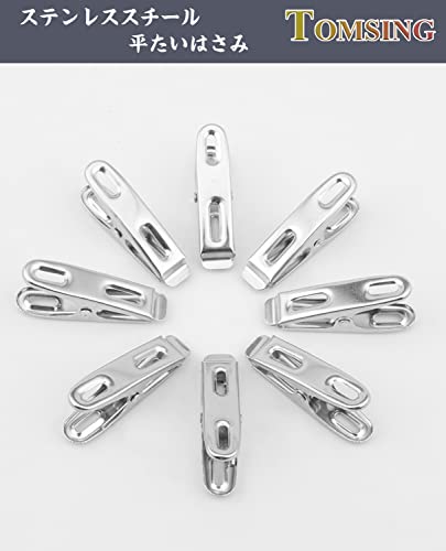 TOMSING - مجموعة مشابك غسيل من الفولاذ المقاوم للصدأ قوية ومضادة للانزلاق مكونة من 40 قطعة من تومسينج، مشابك لتجفيف الملابس والسراويل والشماعات، مشابك مقاومة للصدأ (فضي، 439 جم، (40 سم)، (5 سم)