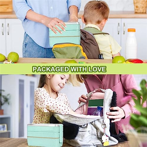 TOMVAES - تومفايس صندوق غداء بينتو 3 في 1 مانع للتسرب وقابل للتكديس مع ادوات