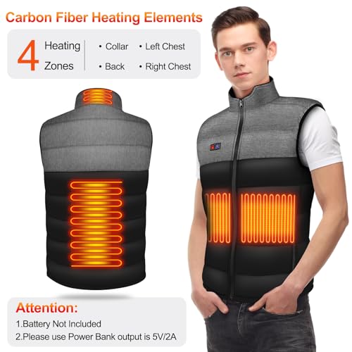 Tonfarb - سترة تدفئة بأربع مناطق تدفئة وثلاثة مستويات حرارة كهربائية تعمل بمنفذ USB للصيد في الهواء الطلق والتزلج للرجال من تونفارب، البطارية غير متضمنة