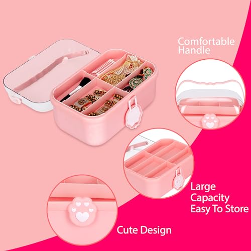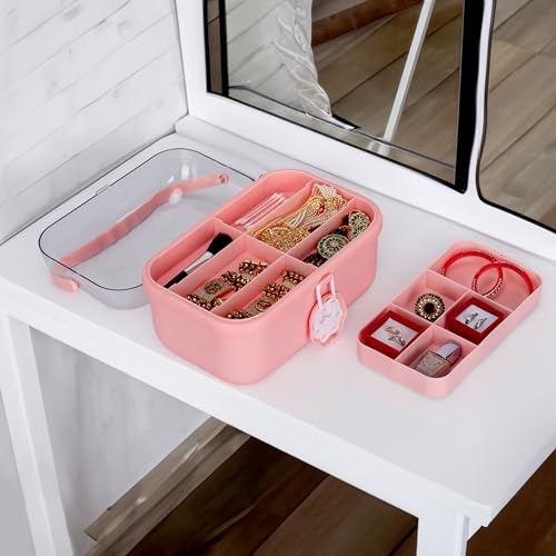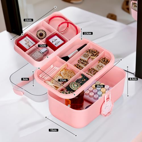 TONSYL - Double Layer Cute Heart Cosmetic Case Makeup Organizer, Beauty Box, Cosmetic Travel Organizer, Makeup Tote Carrier, Hair Jewelry Container