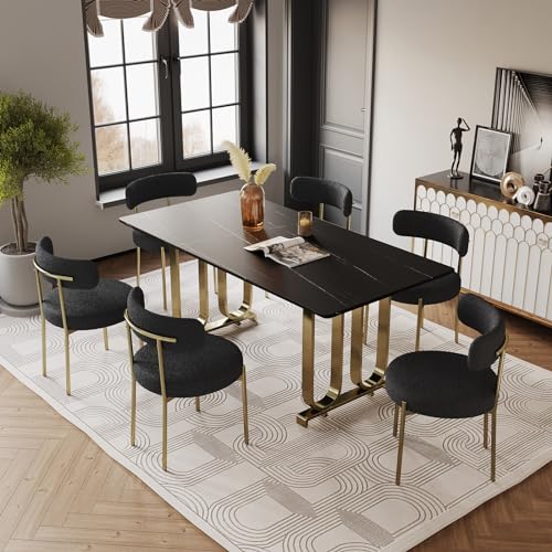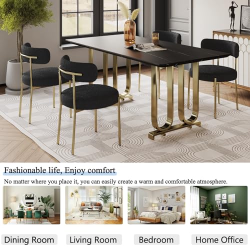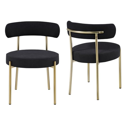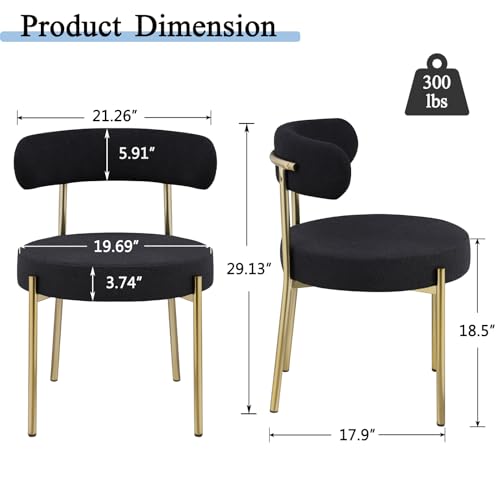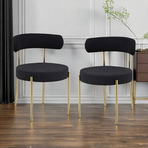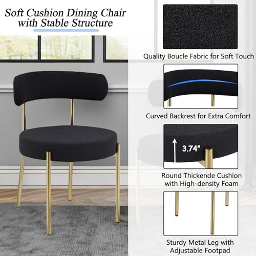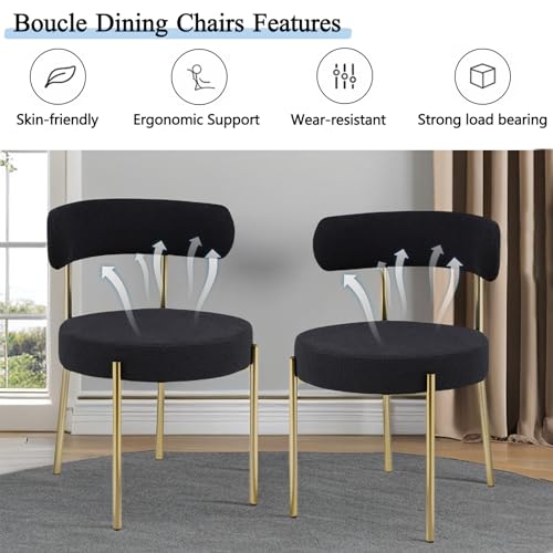 TonyDo - TonyDo Black Boucle Dining Chairs Set of 2, Modern Dining Room Chairs with Backrest, Upholstered Round Boucle Chair for Living Room,Armless Kitchen Chairs with Brass Metal Legs